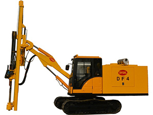 潛孔鑽機的工作原理與(yǔ)其(qí)他鑿岩機相同。具有衝擊、旋轉、卸碴、推進等鑽孔成孔過程,屬於衝擊旋轉鑽孔。不(bú)同(tóng)的是,潛孔(kǒng)鑽機的衝擊(jī)器裝置在(zài)鑽杆前端,潛入孔底,隨著鑽孔的延伸不時行進。